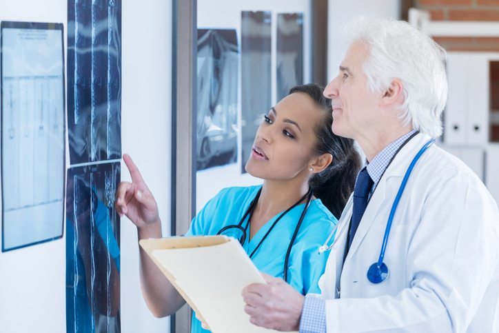 Confident radiologists examine patient x-rays