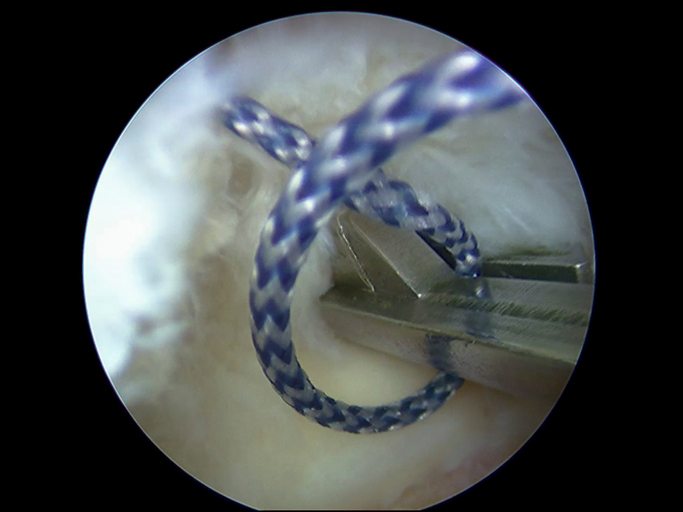 Arthroscopic view of a sewing machine for rotator cuff repair
